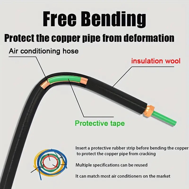 A protective cover made of PE plastic for air conditioner copper pipes prevents bending and deformation.Insert a rubber strip before bending to avoid cracking.Suitable for various sizes and colors to match most air conditioners.Durable and long-lasting due to high density and strength.