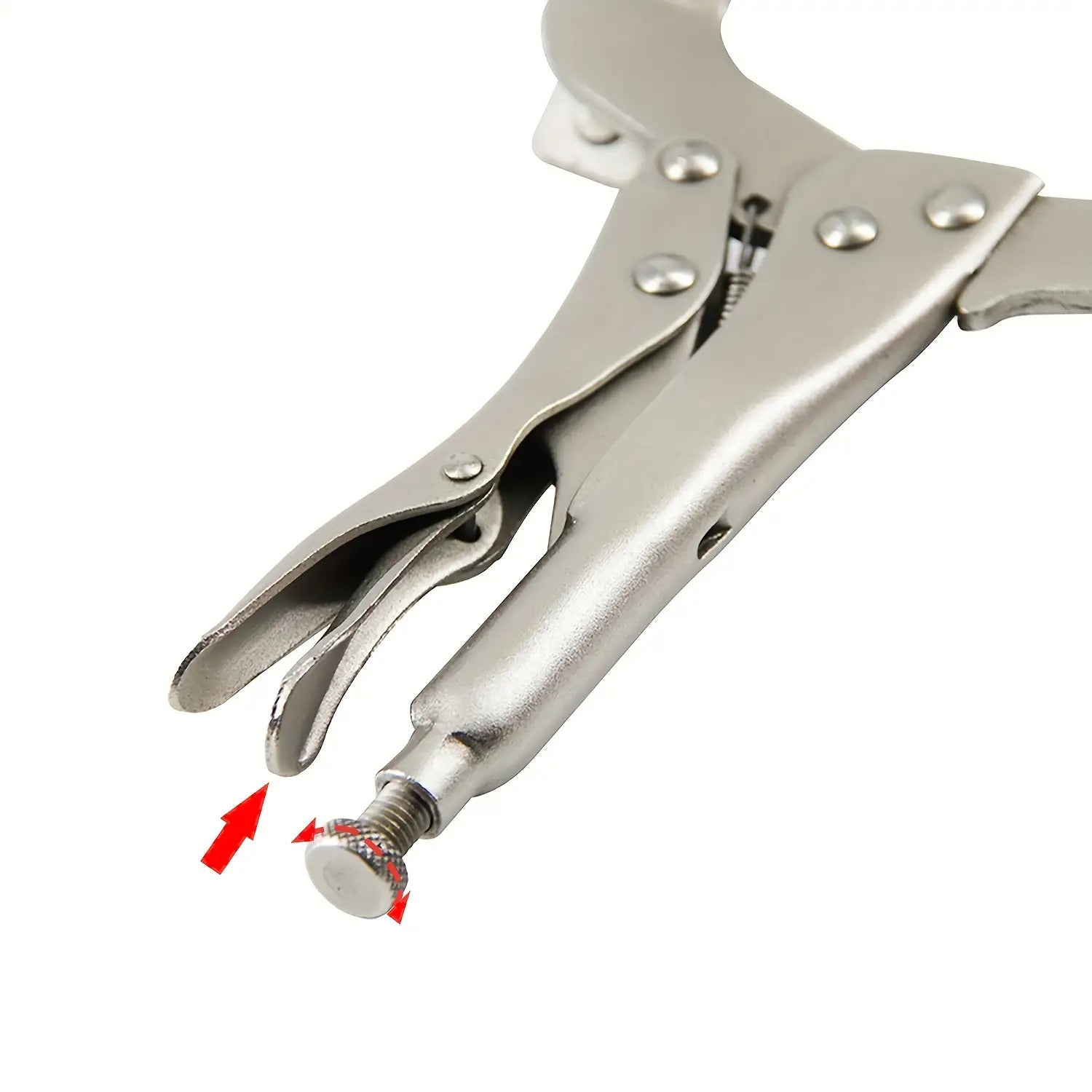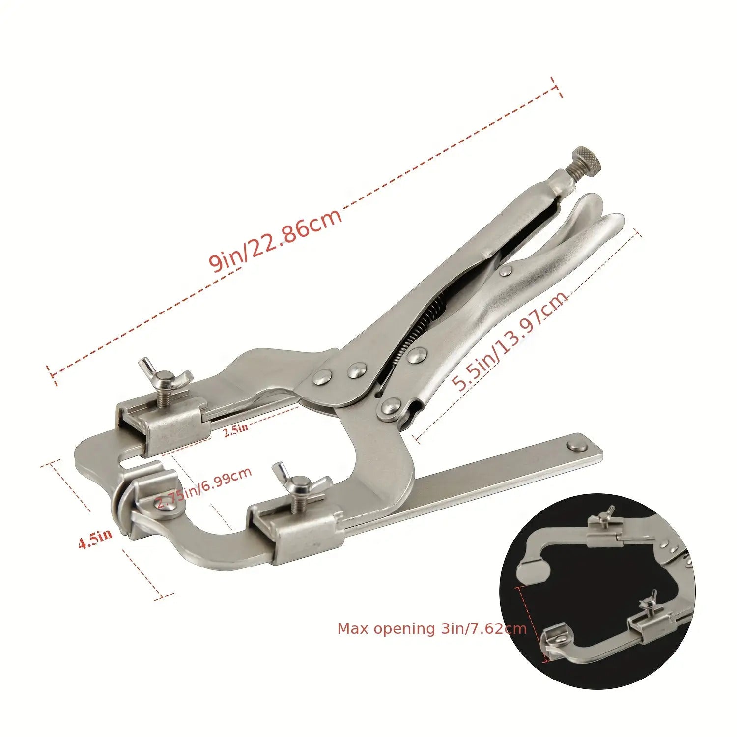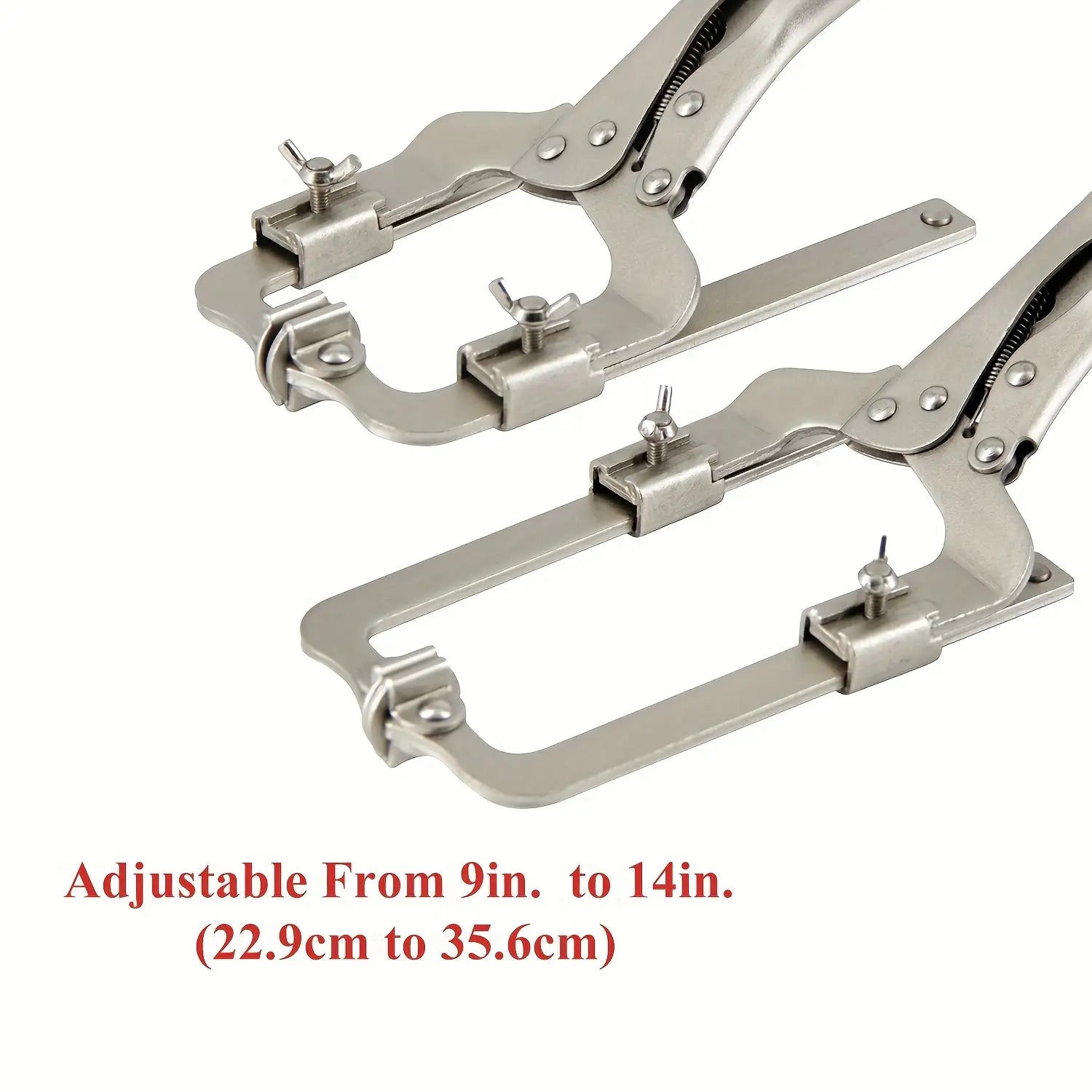 9-14 inch Heavy Duty Telescopic Slide Locking Pliers Adjustable Locking Welding C-Clamp With Swivel Pads Weight: 0.79KGS Size: 23*10.5*10CM Material: Head of Pliers#45 Carbon Steel, Body Q235 Steel Expansion Range: 9-14 inches Clamping