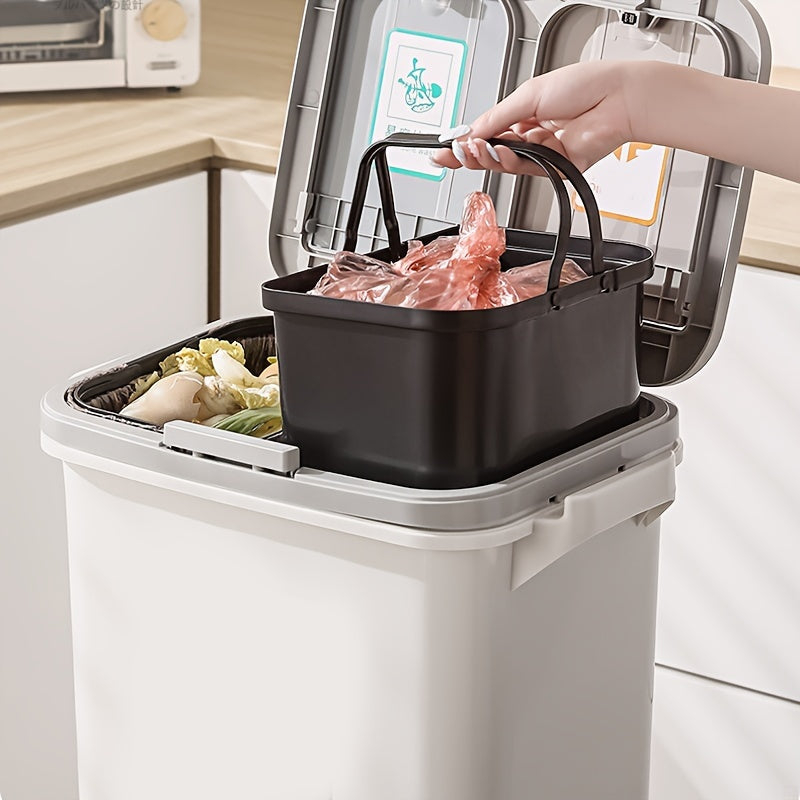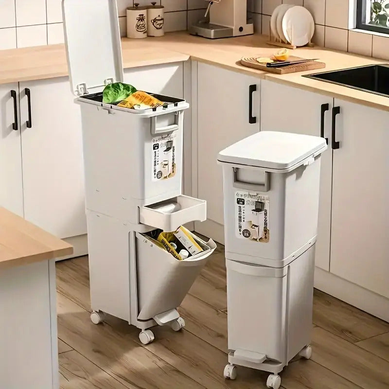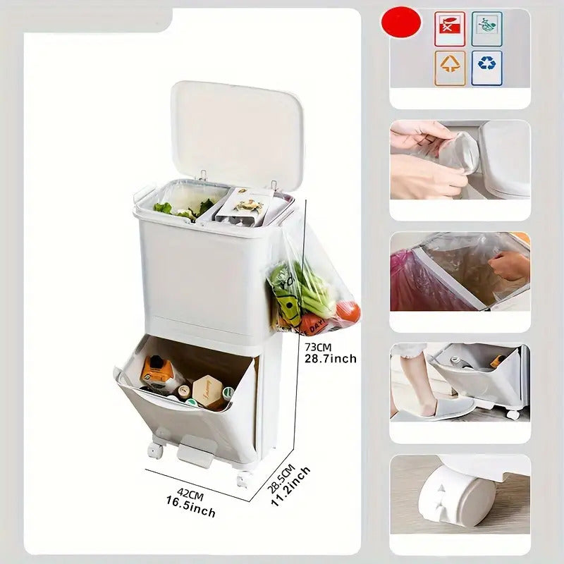 1pc Large Dual-Compartment Kitchen Trash Can with Wheels