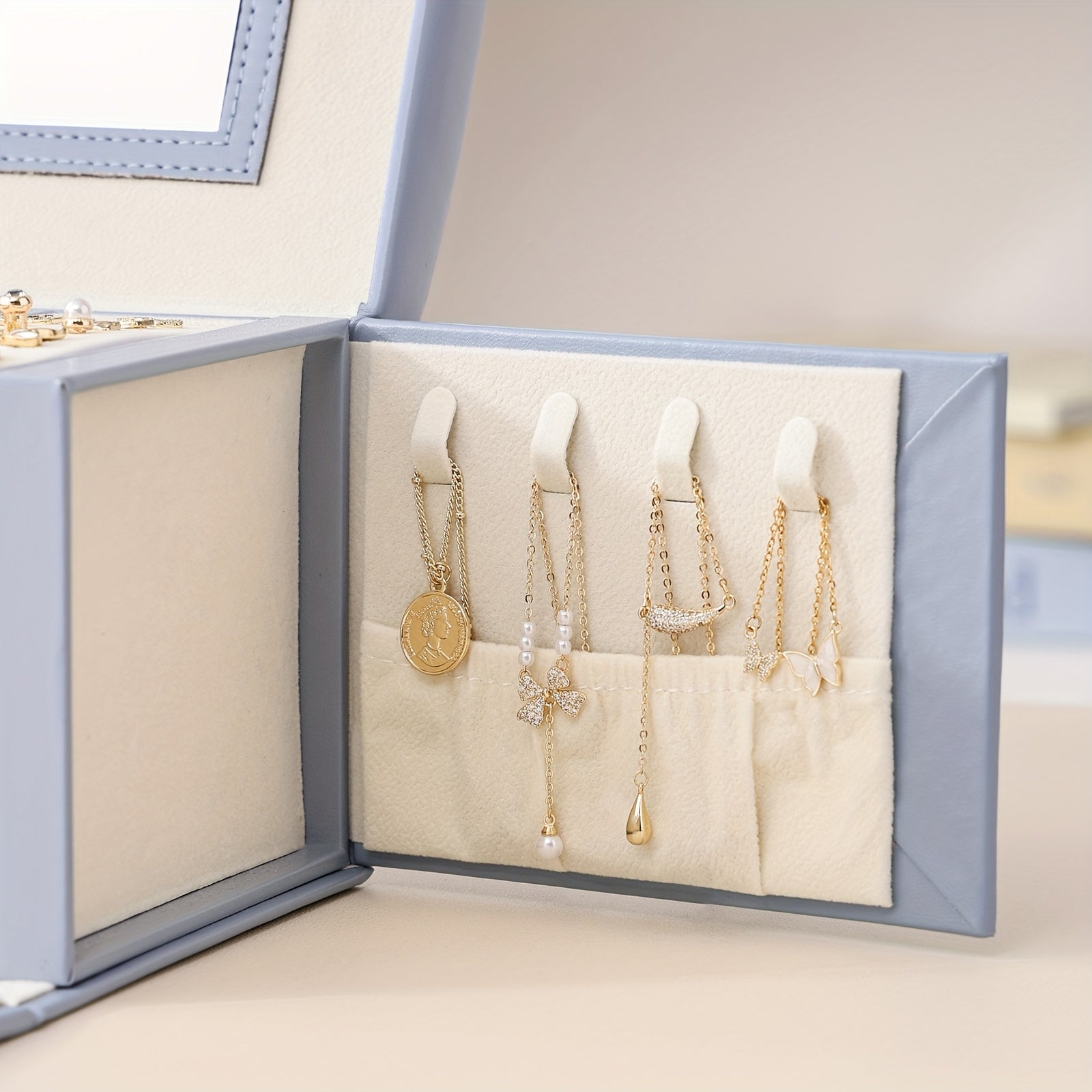 1pc Portable Jewelry Organizer Box with Built-in Mirror