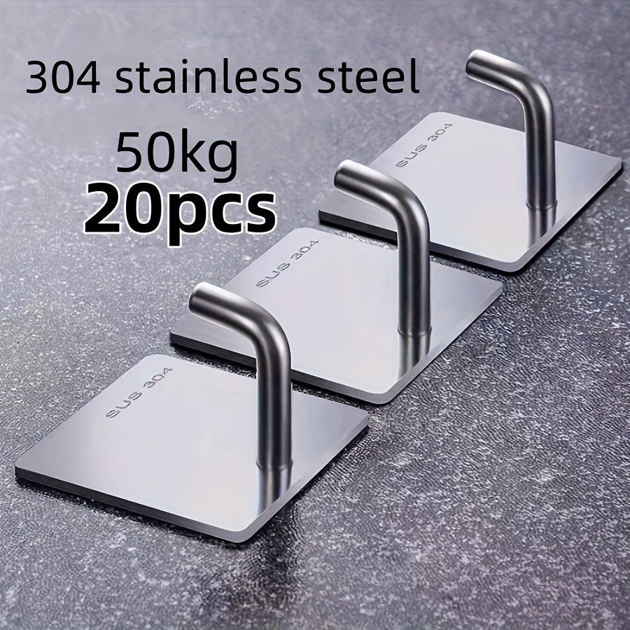 20pcs-Heavy-Duty Stainless Steel Adhesive Hooks