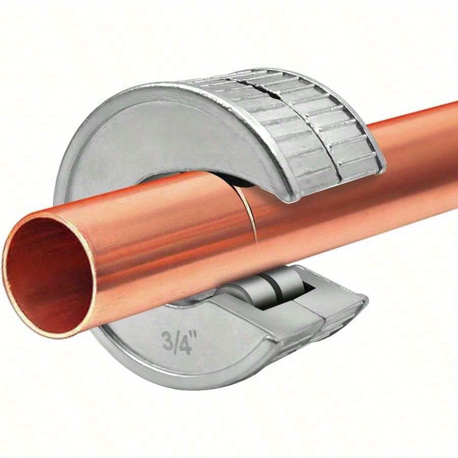 A tool for cutting copper pipes of 1/2" and 3/4" is available. Crafted from durable zinc alloy, this tool can be easily adjusted and tightened with one hand. Its compact size makes it convenient for both use and storage, ensuring accurate and effortless pipe cutting.