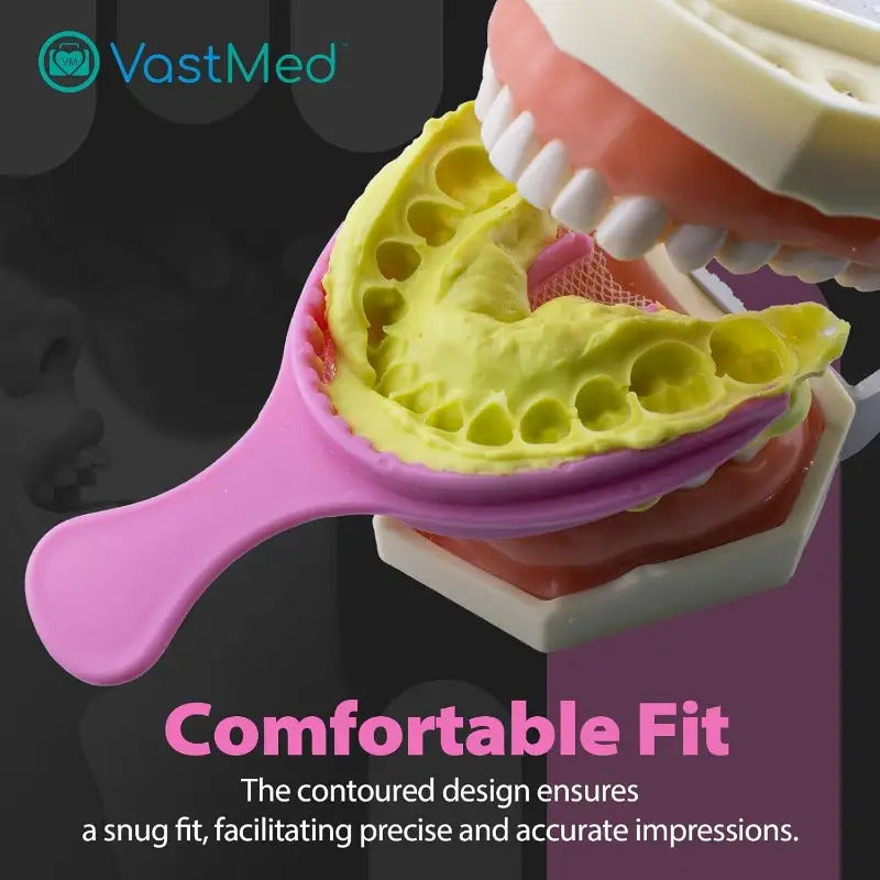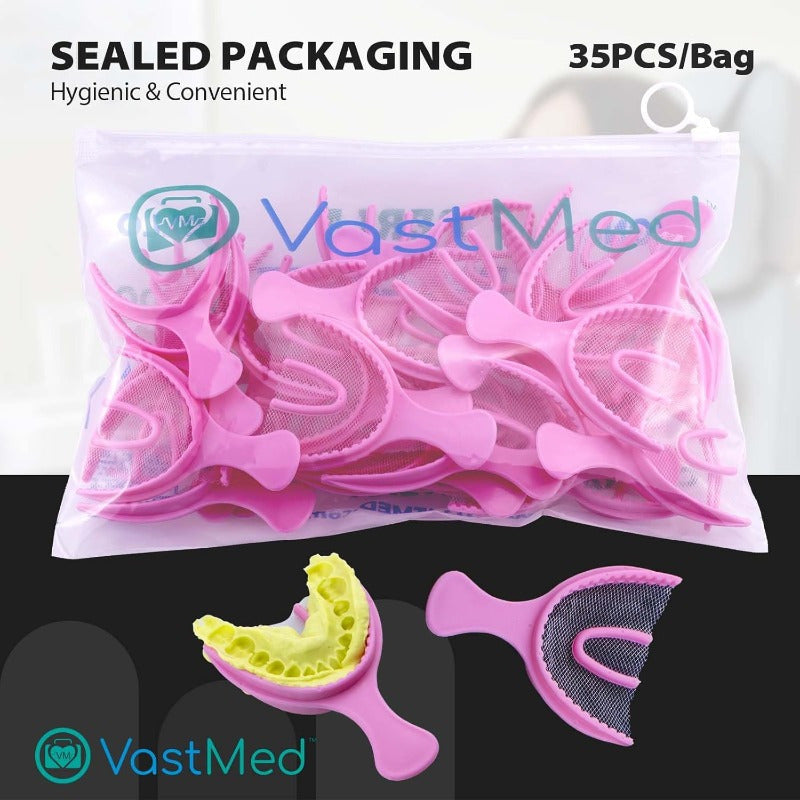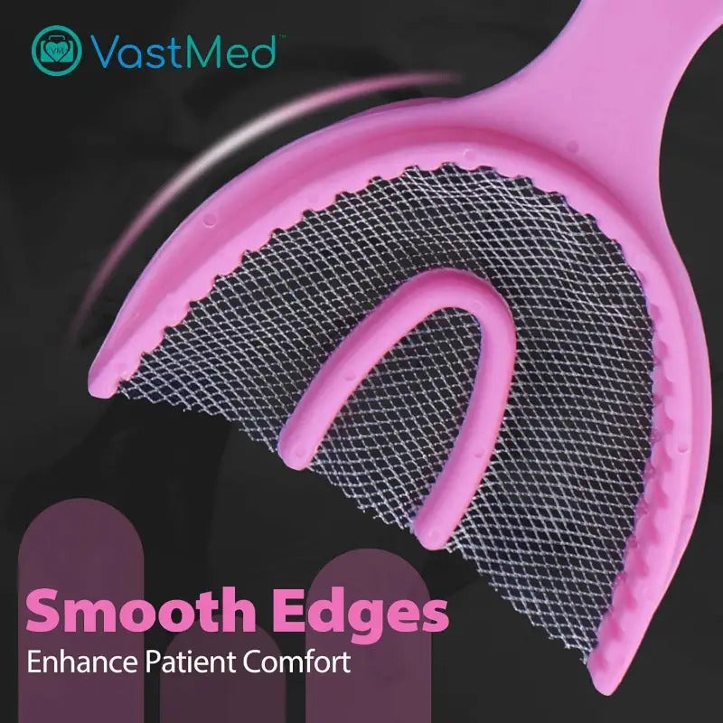Efficient triaxial bite trays: The dental mesh registration triaxial bite trays are meticulously designed to enhance the efficiency of the impression process. They feature three sections for precise positioning of impression material, allowing for the simultaneous capture of multiple tooth surfaces, thus saving time. High-quality patient comfort: These trays provide a comfortable fit for patients. Their ergonomic design reduces discomfort, and the rounded corners help prevent injury during the impression process, leading to a better experience. The patient experience and collaboration with IMPD. Our bite registration trays are made of a sturdy plastic frame and a thin, durable mesh. The robust frame offers better stability, while the tear-resistant mesh promotes durability and optimizes tooth alignment, ensuring reliable, non-deforming impressions every time. We offer various styles of dental registration bite trays, including full arch large, quarter large semi-posterior, posterior, lateral, and anterior small full. The quadrant small semi is an essential tool suitable for various impression materials in dental practice. We are committed to ensuring your satisfaction with a 100% guarantee. Your safety and well-being are our top priorities, so please feel free to contact us with any questions, and we will do our best to resolve them, providing you with a quality shopping experience.