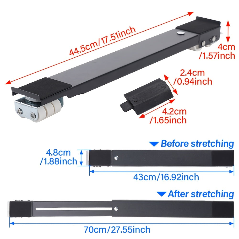 Details: [Details/Parameters] Material: Plastic and Metal Weight: 1. 35KG Size of mobile bracket: approximately 45 x 5 x 4cm / 17. 7 x 2 x 1. 6 inches Length of bracket extension: around 70cm / 27. 6 inches Suitable for: refrigerators, washing machines, dryers, etc. Package Includes [Package Contents] 2 x Mobile Stands 2 x Non-slip Pads