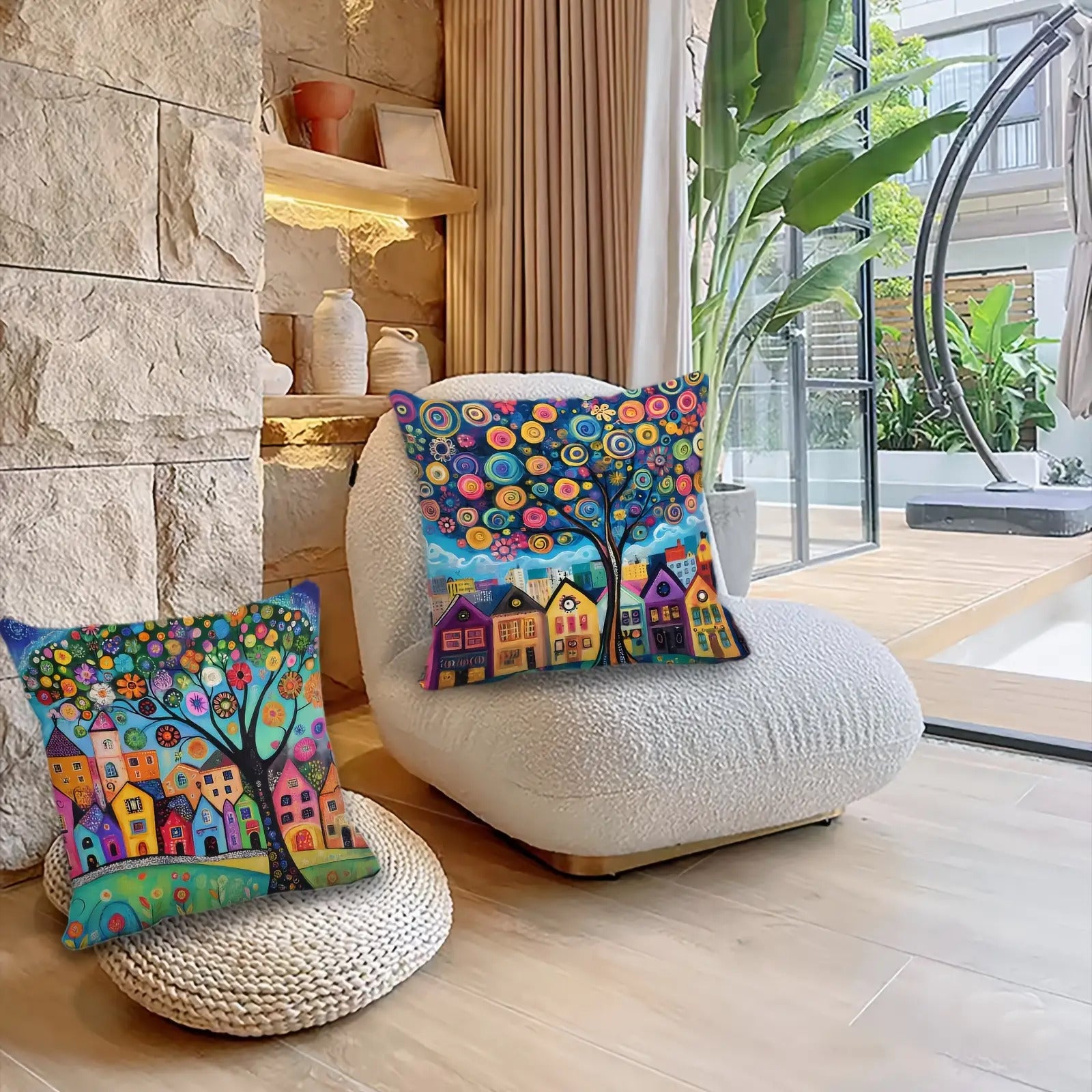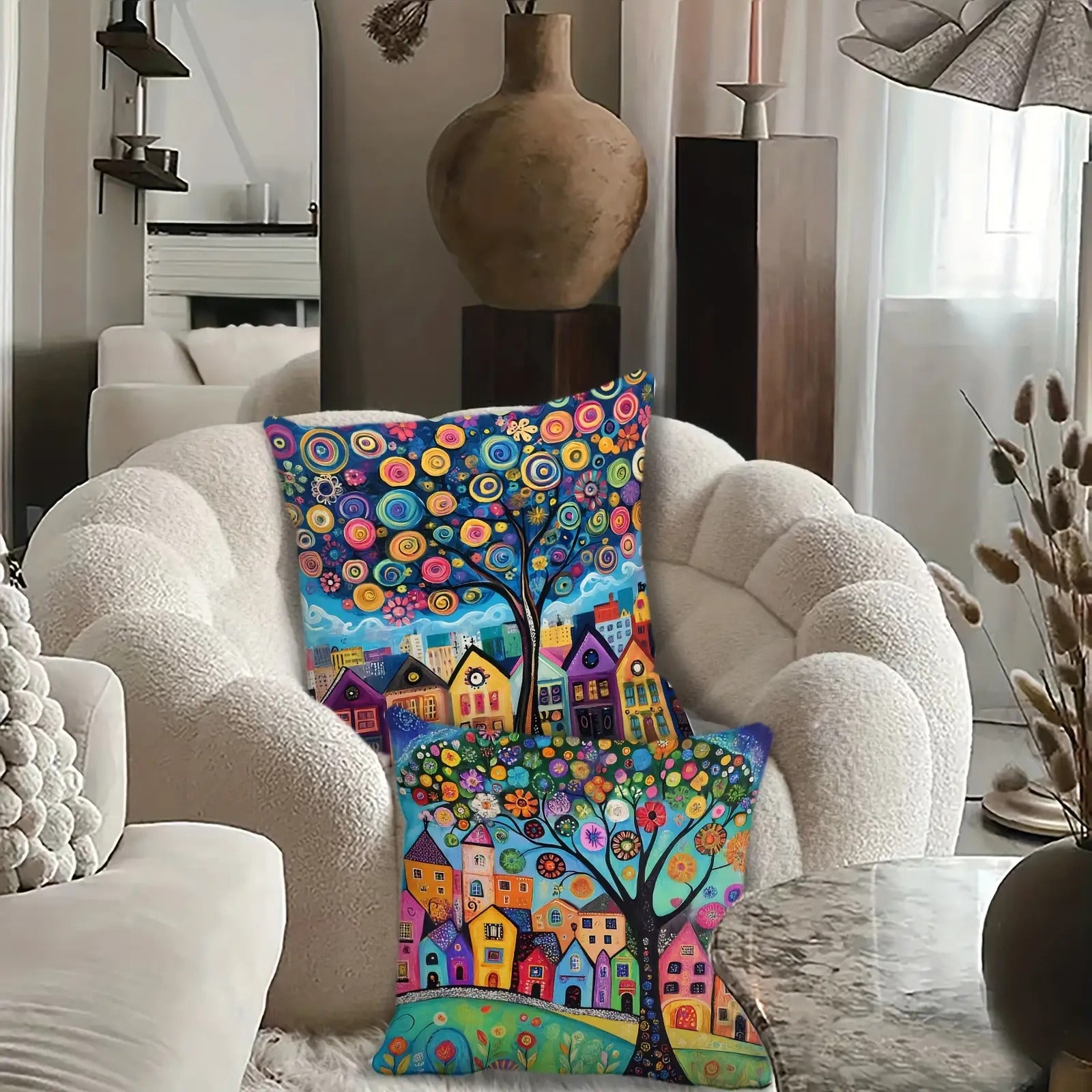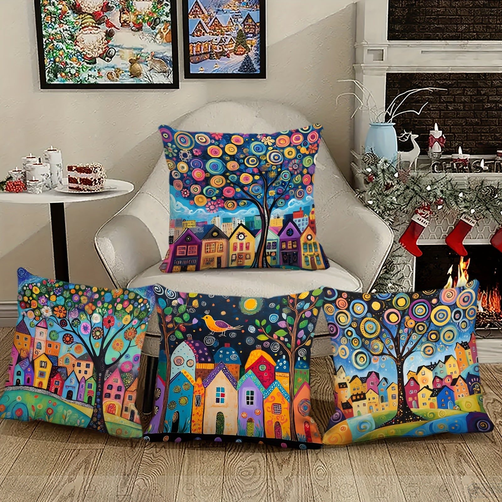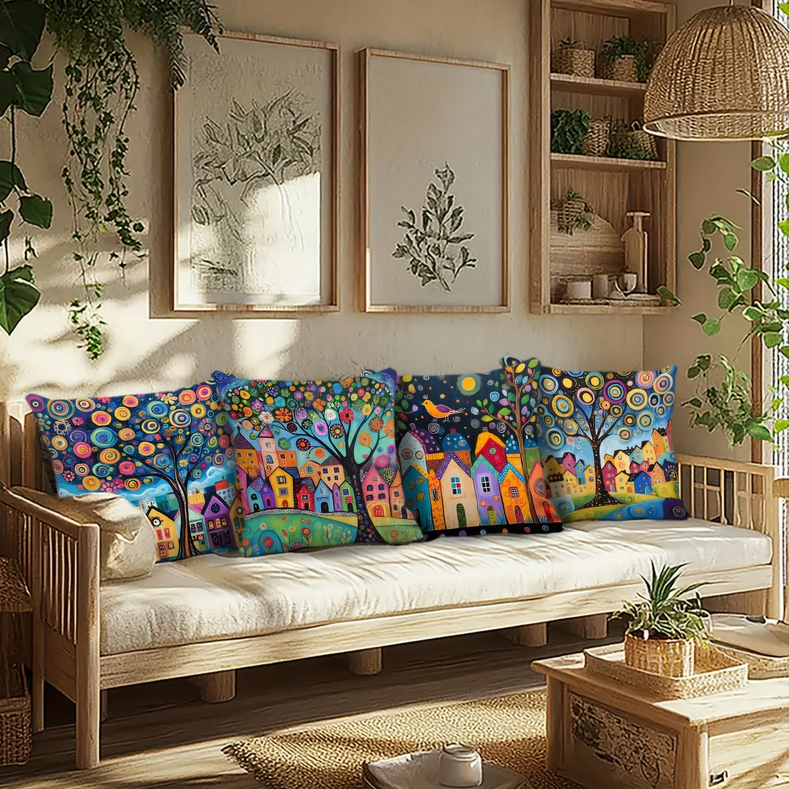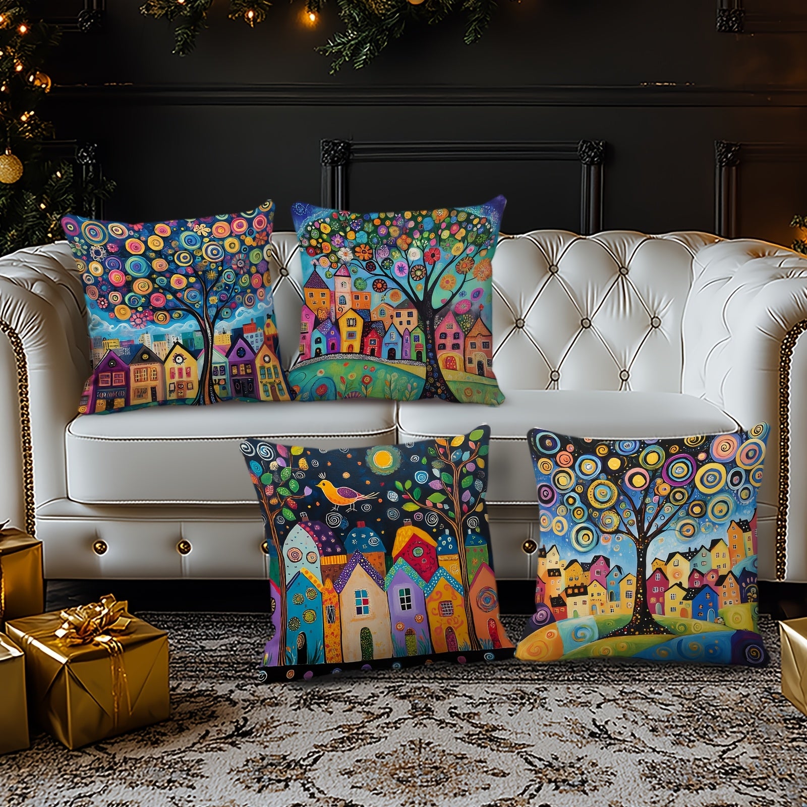 4-Pack Traditional-Style Abstract Countryside Throw Pillow Covers