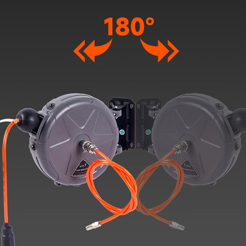 Key Points: 1. Seamless Reliability: The air hose reel features an integrated design with an automatic locking mechanism, ensuring easy stability and extending the lifespan of the compressor hose, providing exceptional reliability. 2. Exquisite Craftsmanship: Our air hose reel is equipped with a powerful rewind spring for easy winding and unwinding, effectively preventing tangling. It can be easily stored even after repeated use, maintaining good tension. 3. Sturdy Shell: Our air hose reel is designed with a robust impact-resistant shell and well-sealed internal connectors to prevent air leaks, allowing for easy tool operation. The durable closed PP shell ensures maximum reliability and longevity. Specifications: Material: ABS Hose Material: PU Hose Free Adjustment: 180° Product Dimensions: Length: approximately 10 meters/393. 7 inches and 6 meters/236.. 33 inches Operating Temperature Range: 10° to 50° C Package List: Automatic retractable hose reel *1 Screws *4 Clips *1 Notes: 1. Due to lighting effects and shooting angles, there may be color differences in the product, please understand. 2. Due to manual measurement, there may be errors in product dimensions.