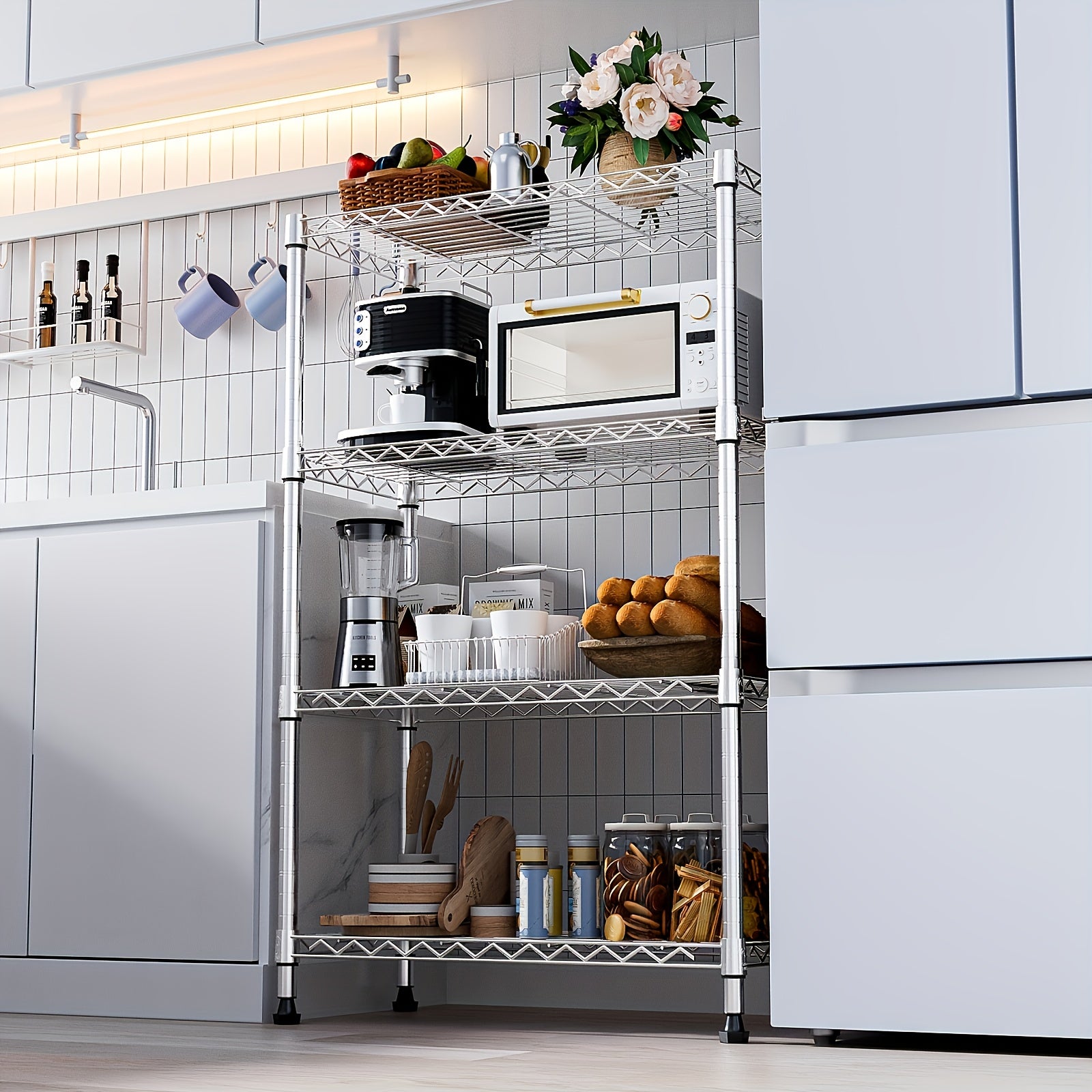 Versatile wire shelving unit suitable for the kitchen, balcony, garage, bathroom, or storage area.It offers ample storage capacity without taking up too much room.