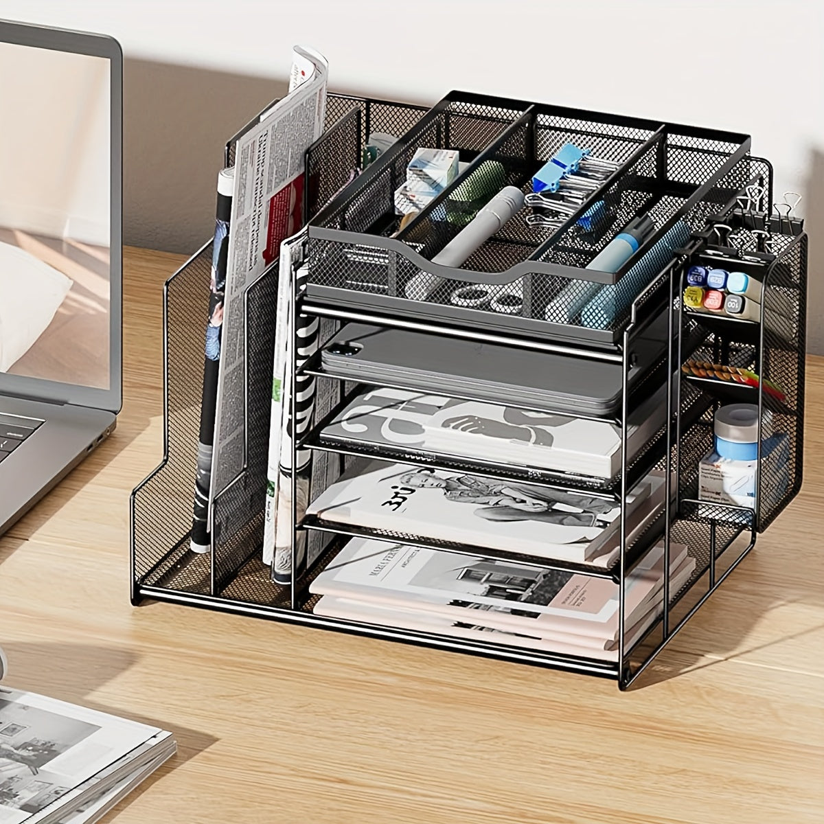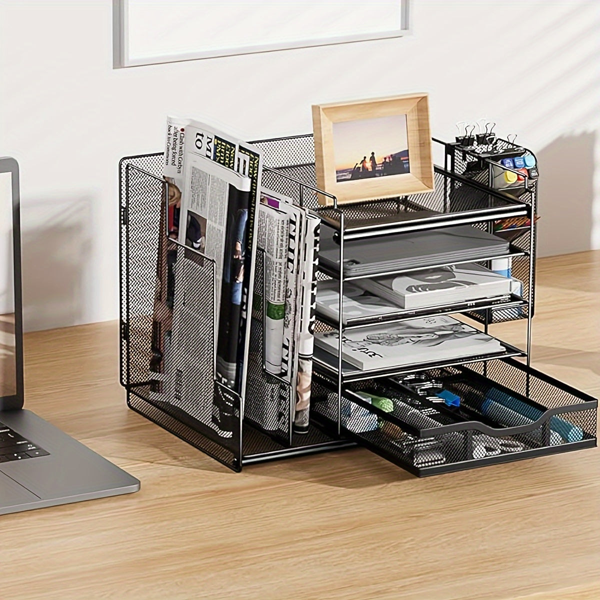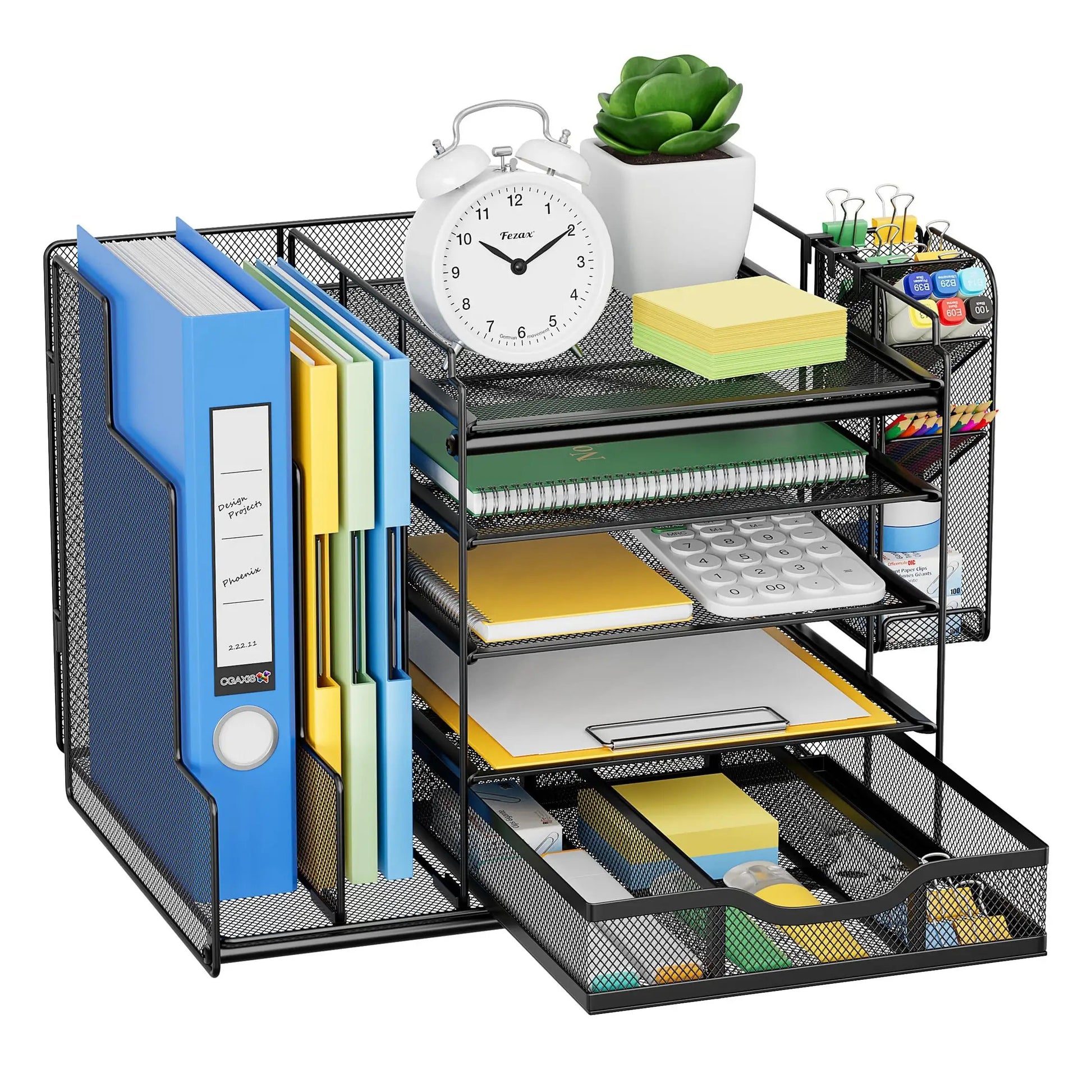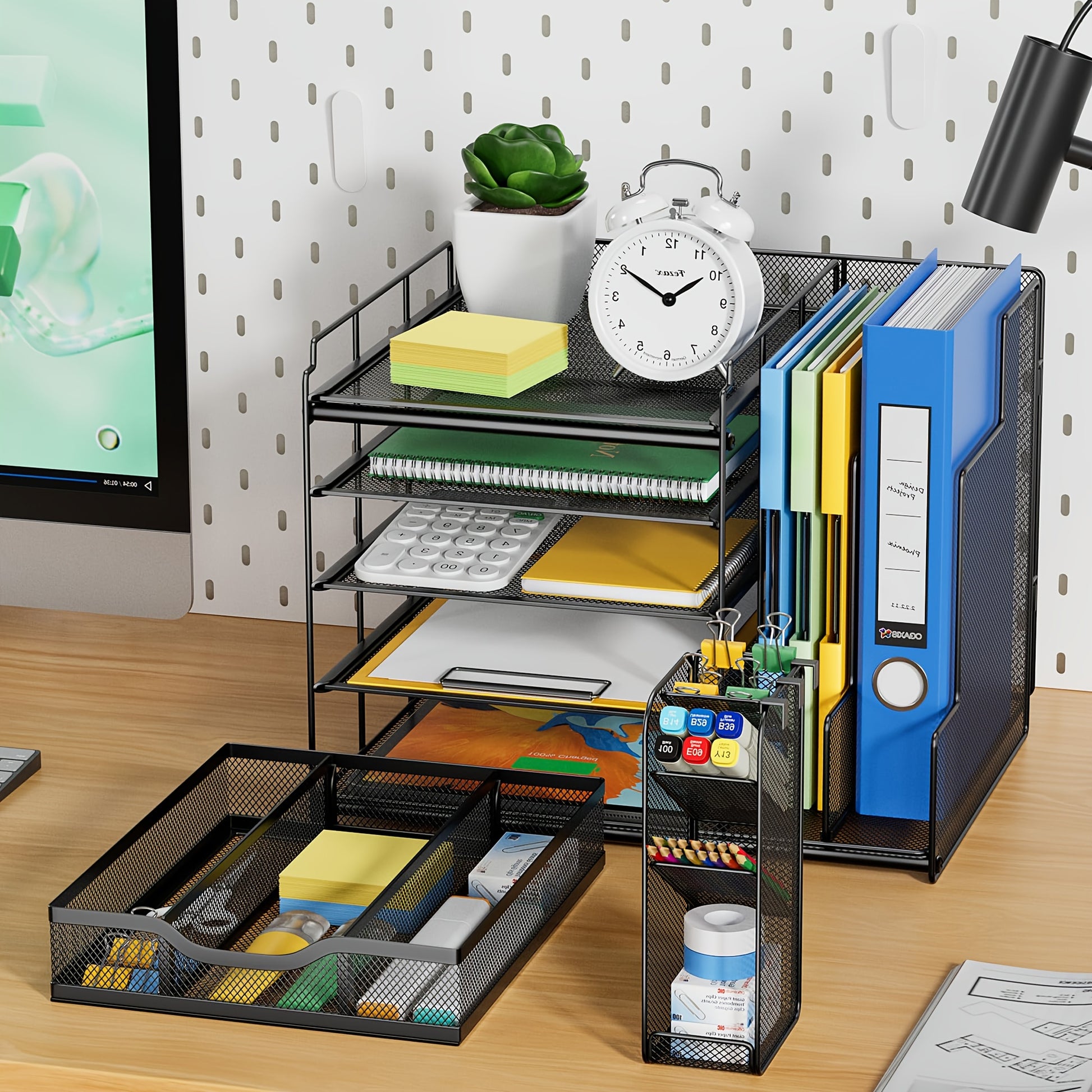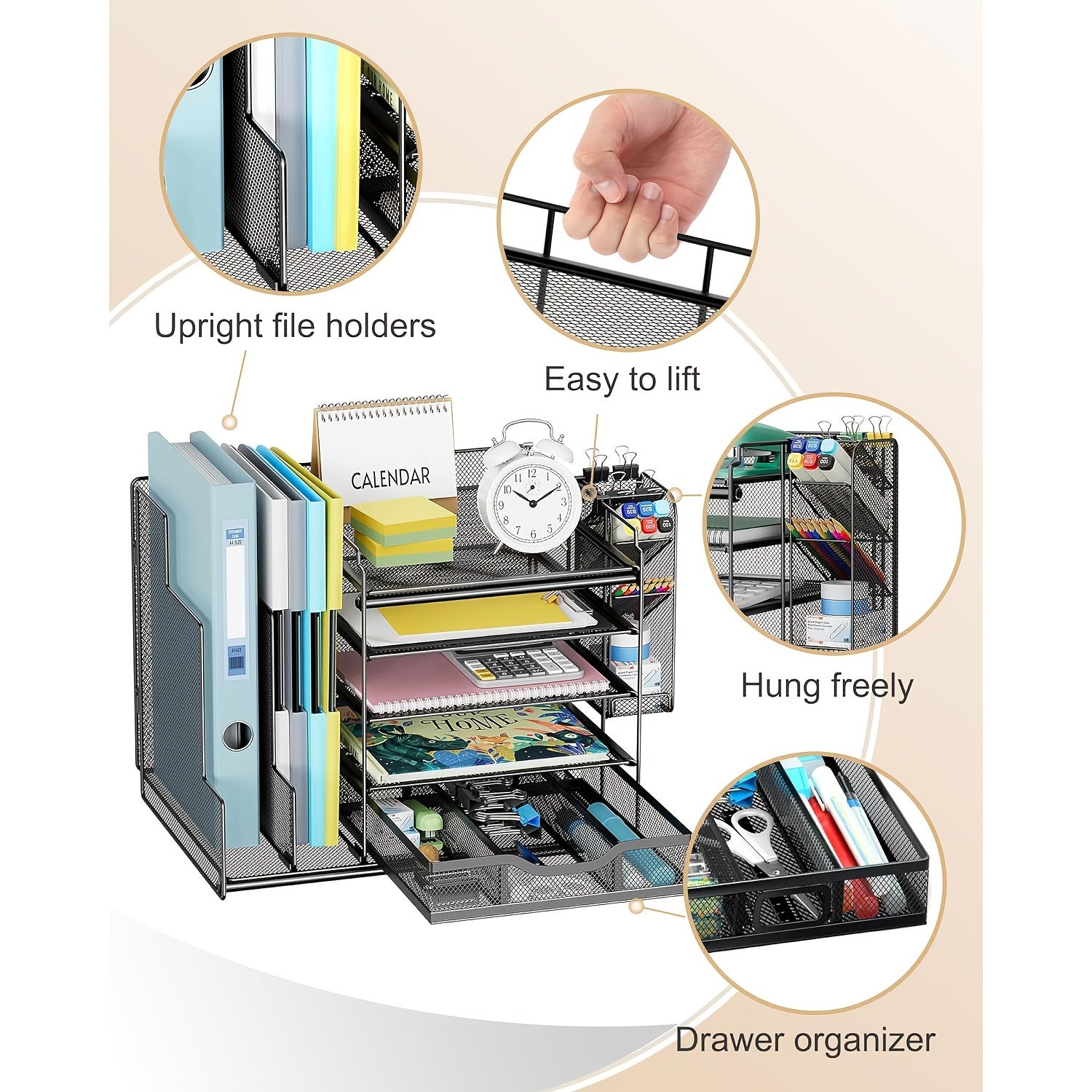 5-Tier Metal Mesh Desk Organizer with Large Vertical File Holder