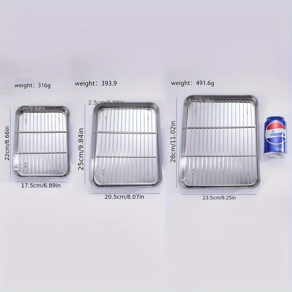 A versatile set of 3 sizes of baking trays and 3 sizes of baking racks, perfect for various baking, roasting, or cooling needs.You can use them separately or together to explore endless baking possibilities.When used together, the trays can catch grease while the racks help achieve crispy food.This bakeware set is ideal for both home and restaurant use, and makes a considerate gift for family or friends on occasions like anniversaries, birthdays, weddings, or housewarmings.