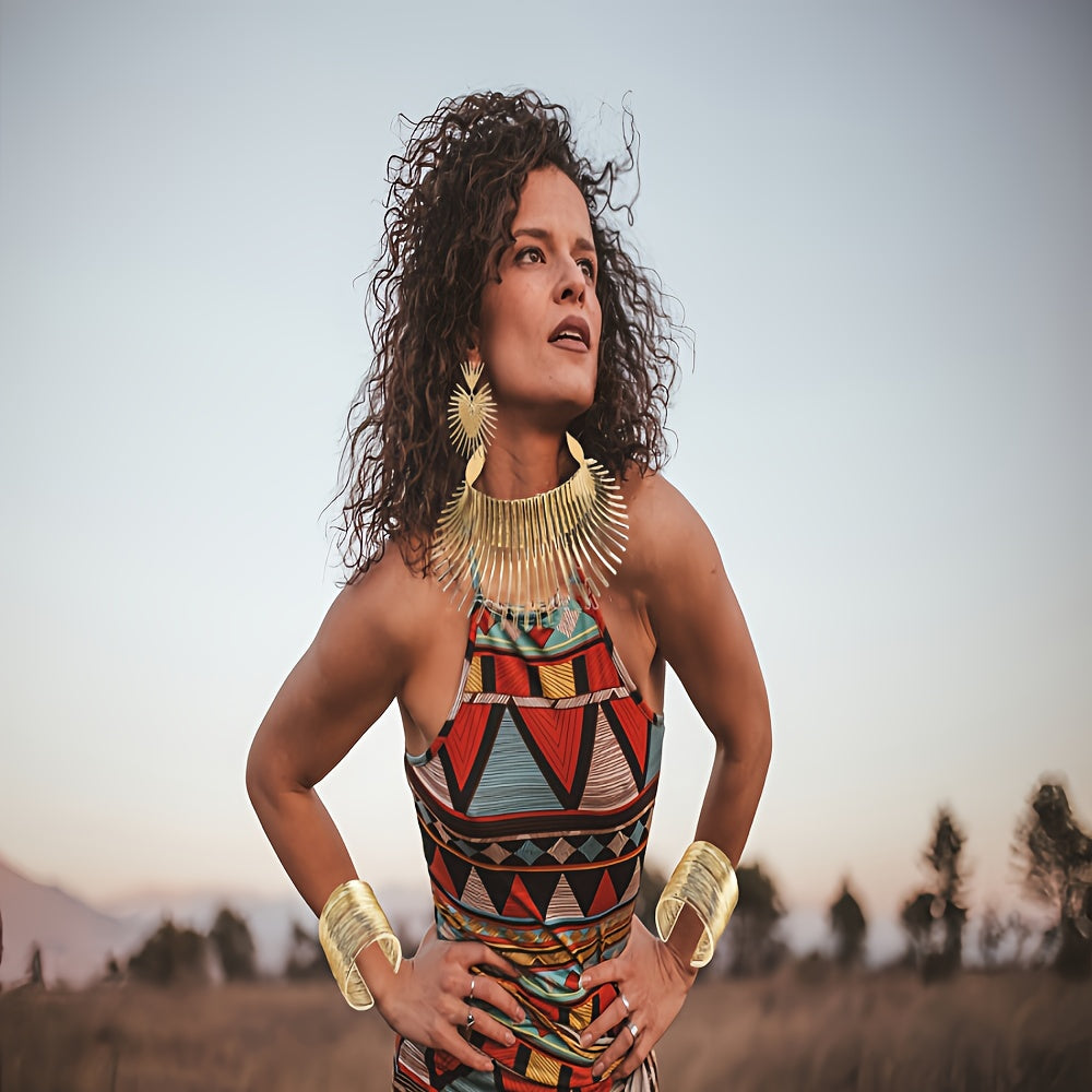 [AFRICAN JEWELRY NELACE SET] Paage contains 1 piece African choker nelace for women, 2 pairs of statement earrings and 2 pieces of Golden cuff bangles, stylish and vintage desige, which can easily match your tribal style clothing and win a lot of complimenindividuals for you.