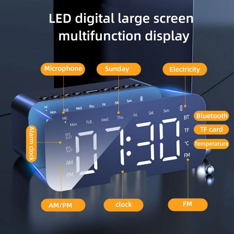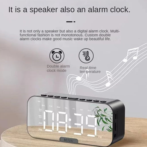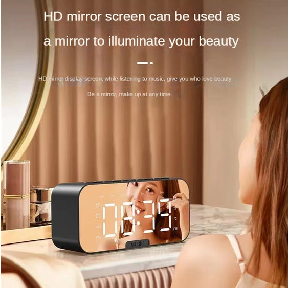 HQAi SK2 Bluetooth Speaker with LED Mirror Clock HiFi Sound FM Radio Portable Mini Display