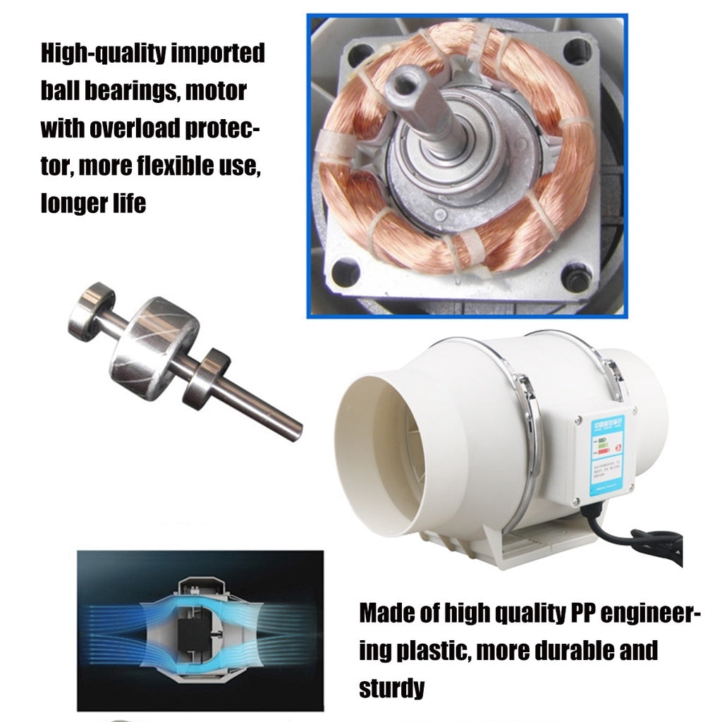 4''5''6''8'' Extractor Fan Low Noise Inline Duct Hydroponic Air Blower Exhaust Fan For Bathroom Room Ventilation Vent Specification - Purification and dust removal, quick ventilation. - With uk plug, flexible installation. - Walls/Windows suitable for ventilation in kitchen, bathroom, toilet, bedroom, living room and office. - Easy to install and clean. - Designed for indoor cultivation. - Comply with all building regulations for bathrooms, toilets and wet rooms. Features: ● Color: white ● Material :ABS(acrylonitrile - butadiene - styrene)+ steel ● Voltage :220 volts,50 Hz ● Plug :UK Plug ● Power: 35W, 40W, 75W,130W ● Noise: 34-43 db ● Fan speed :2600 RPM ● Diameter :4 "(100mm), 5"(125mm), 6" (150mm), 8 "(200mm) ● Exhaust: 4" (220 m³/h), 5" (310 m³/h), 6" (540 m³/h), 8" (900 m³/h)