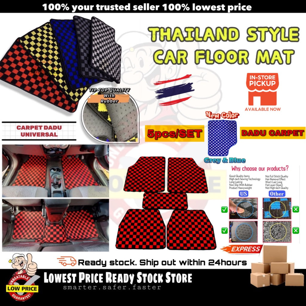 - Universal Fit for all cars - 1 set 5PCS front 2PCS rear 3PCS - Accurate Cun-Cun Fit for all cars - Anti-Dirty compared to ORIGINAL or other carpets - Anti-Slip Front - Length: 70cm, Width: 50cm Rear middle - Length: 57cm, Width: 25cm Rear - Length: 48cm, Width: 44cm