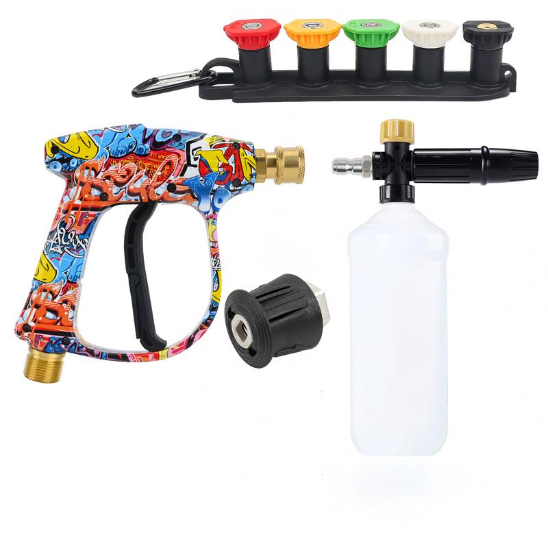 Overall, the Graffiti High-pressure Water Sprayer with Foam Sprayer is a versatile and efficient cleaning tool suitable for Karcher K-series Cleaning Machines. With its high-pressure water spraying, foam sprayer, 1/4 Fast Nozzle Set, and Rubber Nozzle Bracket, this sprayer is a great addition to any cleaning arsenal.