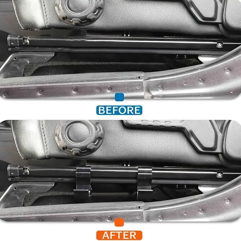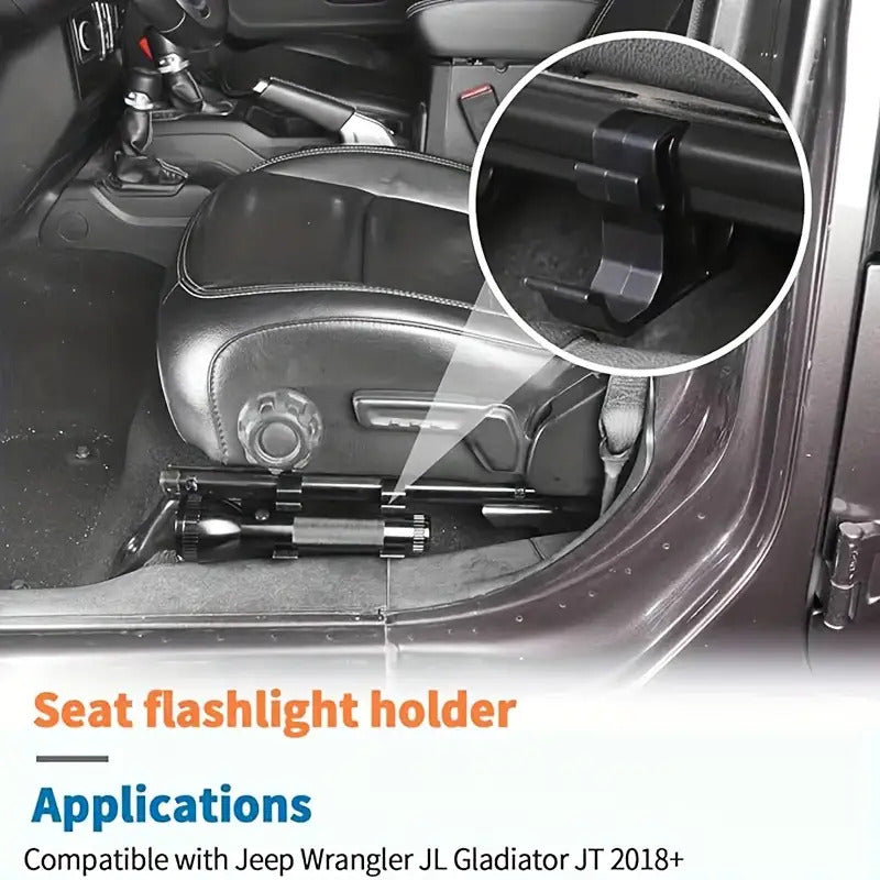 Simple Setup 1. The flashlight holder attaches easily to the side of either the driver's or passenger's seat. 2. Just slide and modify the bracket to fit the size of your flashlight. 3. The flashlight bracket does not interfere with the seat's adjustability. You can still fully adjust the seat both vertically and horizontally.