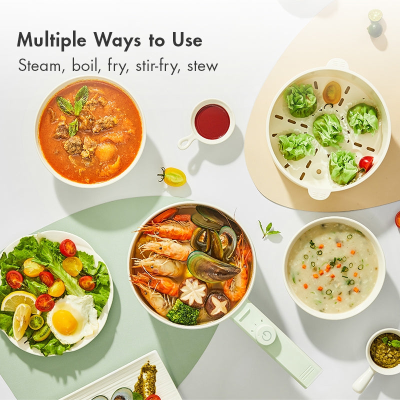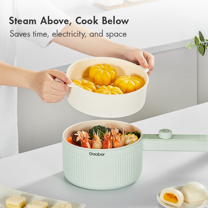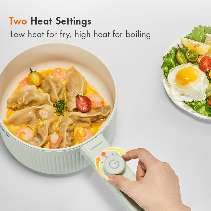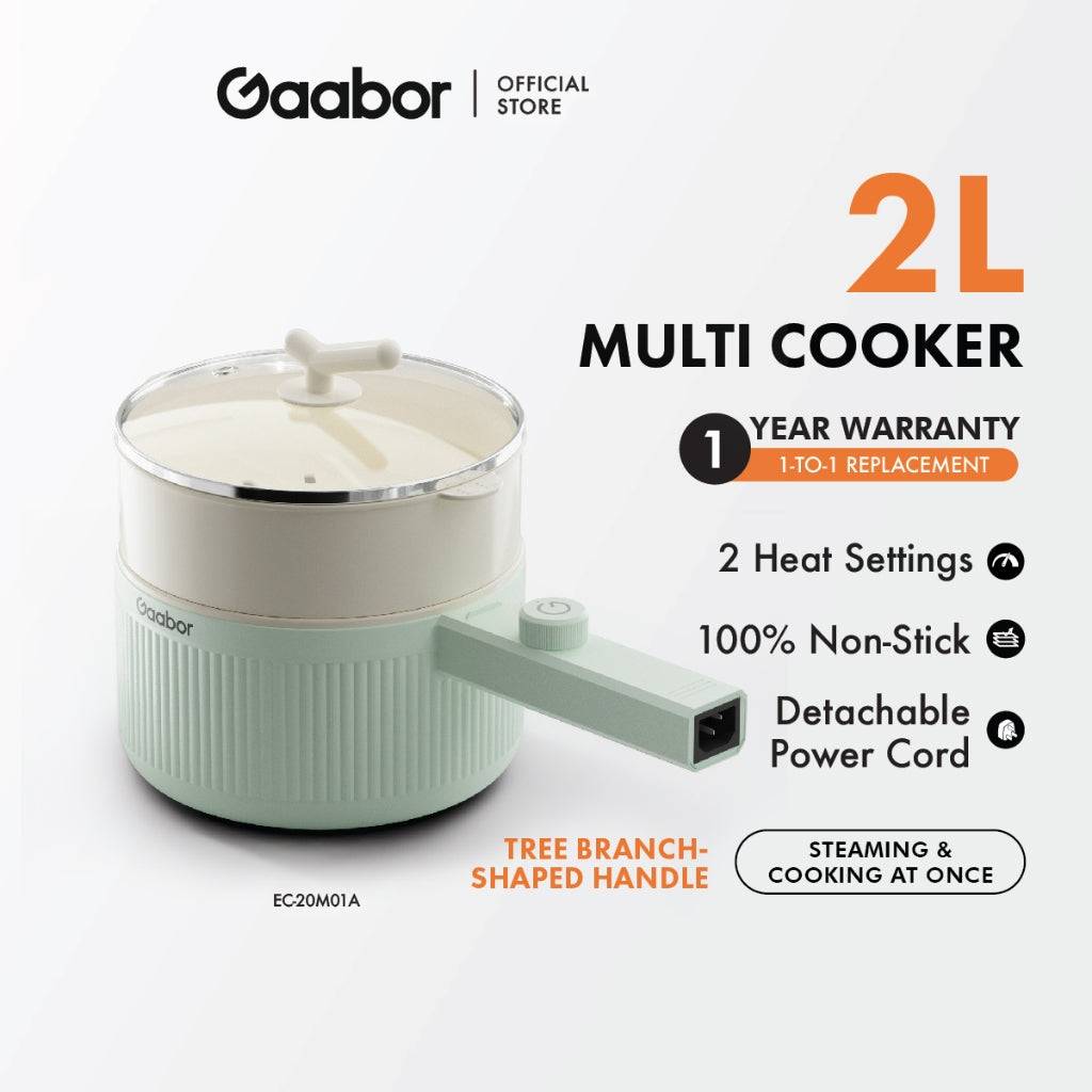 ***1 YEARS 1-TO-1 REPLACEMENT 【EC-20M01A Product Description】 Brand: Gaabor Product Name: Multifunctional Electric Skillet Model: EC-20M01A Rated Capacity:2L Color: light green Product Size: 350*245*200 (mm) Product Weight: 1. 25kg 【Features】 ~ 2L capacity, suitable for 1-2 people ~ Multiple ways to use. Simmered,Pan-fried,Hot-pot,stir-fried,steamed ~ Steaming, frying, frying, fancy cooking to satisfy your stomach ~ Food-grade non-stick coating, easy to clean and take care of ~ Two levels of firepower adjustment, control the fire at any time ~ Double-layer anti-scalding cup body, double the safety ~ Double safety, high temperature + anti-dry burning power-off protection ~ The long handle makes frying comfortable and won''t burn when you cook ~ Steamed egg groove design, steamed egg does not roll ~ Pot lid twig handle, place stable 【Ciri-Ciri】 ~ Pelbagai cara penggunaan: Direbus, digoreng, hot-pot, tumis, kukus. ~ Adjustable power, High power suitable for boiling water, low power suitable for heating milk and shabu-shabu. ~ The long handle makes frying more comfortable and won't burn while cooking. ~ Using a non-stick coating, it doesn't stick during frying. Easy to clean. ~ Double-layered body for prevention from burning during cooking. ~ Power failure protection if high temperature/dry burning/excessive heating. Automatic protection if the bottom temperature exceeds 185 degrees. ~ More details: ①Steamed egg groove design, steamed eggs do not roll. ②The pot cover handle is placed stably. ③Long handle, not easy to leak during washing, safer. Why Buy From Gaabor? ① 30-Days Return ***We provide 30-days return for the item that is unworn or unused, with tags, and in its original packaging. The return of goods should not affect secondary sale & return delivery charges shall be on his own. ② Up to 3 Years Gaabor Warranty* ***We provide 1-to-1 to replace your malfunction or faulty unit. Warranty only can be claimed once. ③ Professional Customer Service ***9AM - 10PM from Monday to Friday; 9AM - 6PM from Saturday to Sunday. *T&Cs Apply. Please Contact Customer Service For More Information on 30-Days Return and Gaabor Warranty.