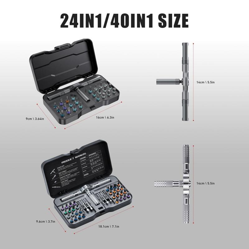 【Magnetic Precision】: Contains 24 magnetic screwdriver bits, ensuring a firm grip on screws for a seamless maintenance experience.
