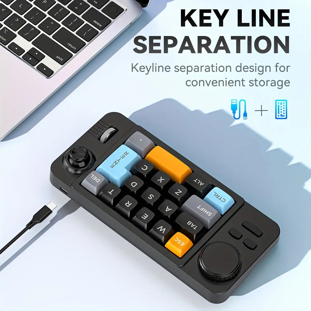 Specifications 1.Compatible Systems: Windows XP/Windows Vista/Windows 7/Windows 8/Windows 10/Mac 2.Weight: 235g±5g 4.Keyboard Dimensions: 202x94x38mm±0.2mm 5.Lighting Options: 8 types 6.Connection Type: Type-C 7.Macro Functionality: Available 8.Hot-swap: compatible with all keys 9.Total Keys: 19