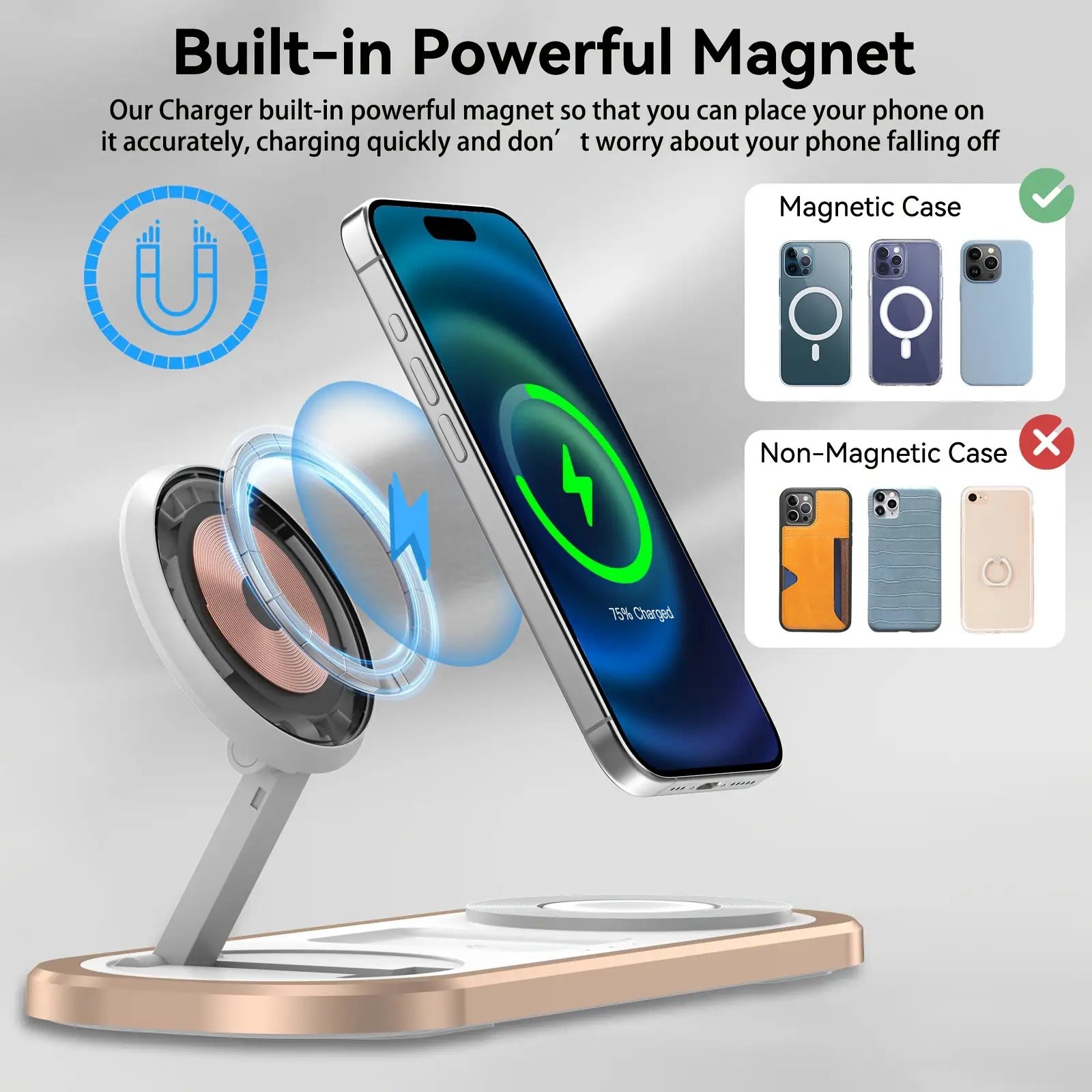 Wireless Charger, 15W 3-in-1 Foldable Charging Station